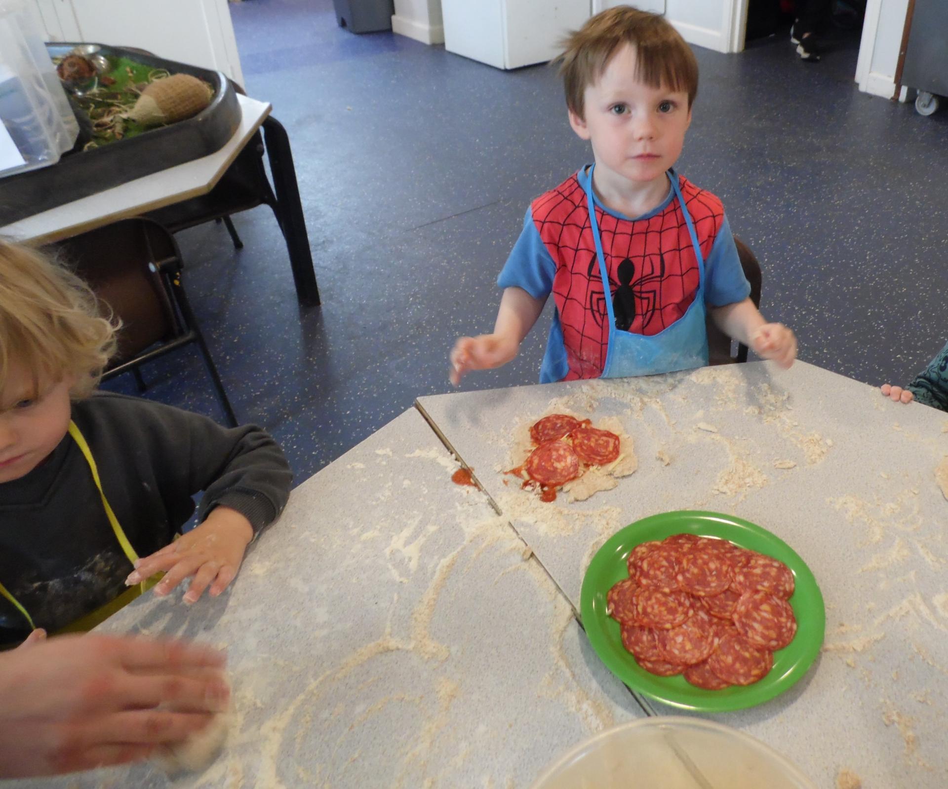 The children then added their chosen toppings. These included cheese and pepperoni.