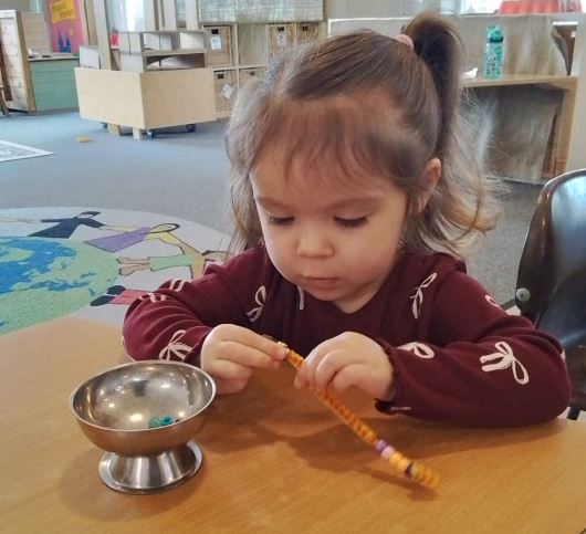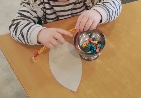 The Hedgehogs also worked on their fine motor skills by threading beads onto pipe cleaners to create their own hungry caterpillar sitting on a leaf to take home. This activity helped to strengthen their finger muscles and coordination while encouraging creativity and independence. The children were very proud of their creations and enjoyed showing them to their friends and families at home.